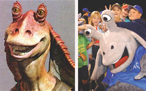 - How could I have missed this one? From Deadspin via SOSG, the 51's mascot bears an uncanny resemblance to a certain annoying-as-hell character in the late Star Wars prequels. Whether that means that a certain segment of the Vegas public will then want to dream up exotic Jar-Jar-icide methods, or merely cook up good justifications for doing so, I don't know, but I do know where you can go to get a good deal...