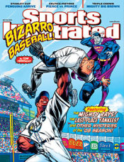 Maybe the Cindy Crawford reference is dating me (quite a bit, actually, and no, I have no idea whether Ms. Crawford ever actually appeared on an SI cover), but Sports Illustrated has commissioned a DC Comics illustration for their May 26 issue, for the lead story of the bizarro scene in baseball, particularly the AL East. Mark Bagley had almost no time to turn this one around:Bagley, who, heroically, is scheduled to provide pencils for all 52 issues of “Trinity,” told CBR News Tuesday evening, “Dan Didio called me Thursday afternoon asking if I could do the pencils. I asked him what the deadline was and he said inked and colored by Monday. I said something nasty, and agreed to do it. From then I dealt with Mark Chiarello.I tried to find that issue yesterday at three different stores but couldn't. I'm gonna run to the Westwood newsstand I sometimes go to later today to see if they've got it. What a great cover! (Via BTF.)“'SI' gave me a paragraph long description of what they needed, and I went to town with some sketches. I had a sketch approved by noon on Friday, and finished the piece Saturday morning.